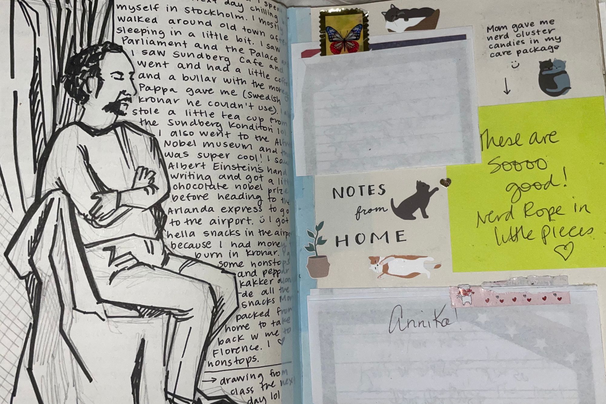 Annika didn’t just write—she created. Her journal became a multimedia scrapbook that captured every dimension of her experience. She documented everything from restaurant reviews and opinions on new foods she tried to small phrases to remember in Italian to inside jokes with friends.